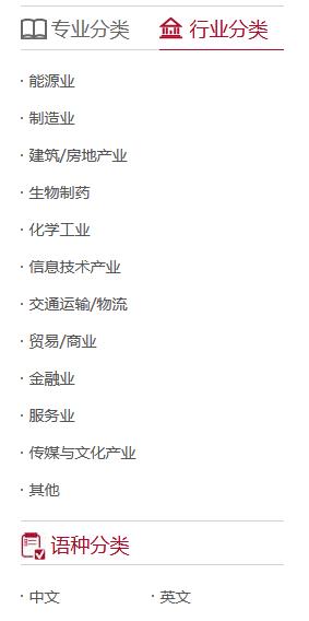 案例庫按照專業分類、行業分類、語種進行分類,可以按照分類進行瀏覽。