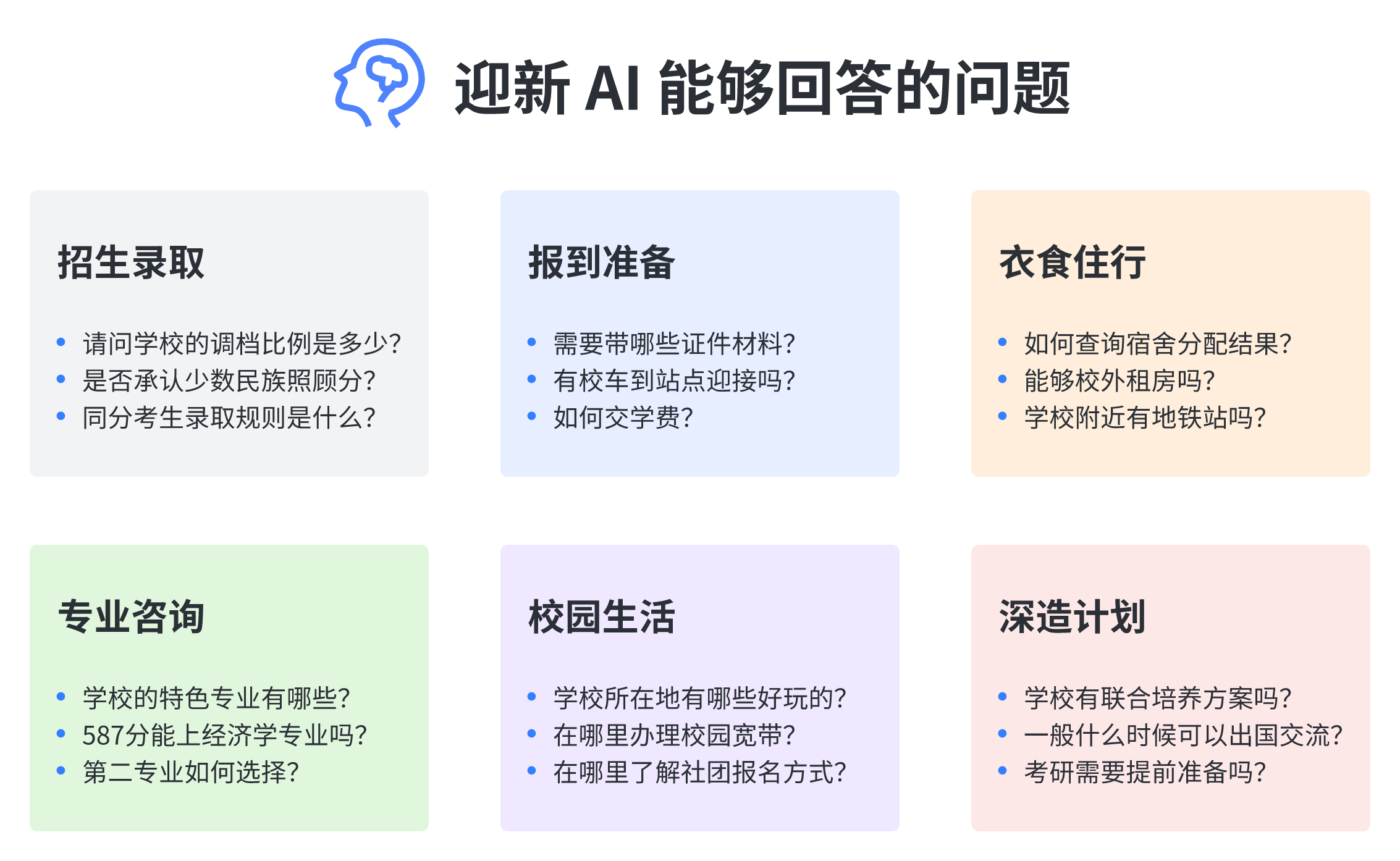 相比于傳統的答疑方式,迎新 AI 提供了更加高效、便捷的解決方案: